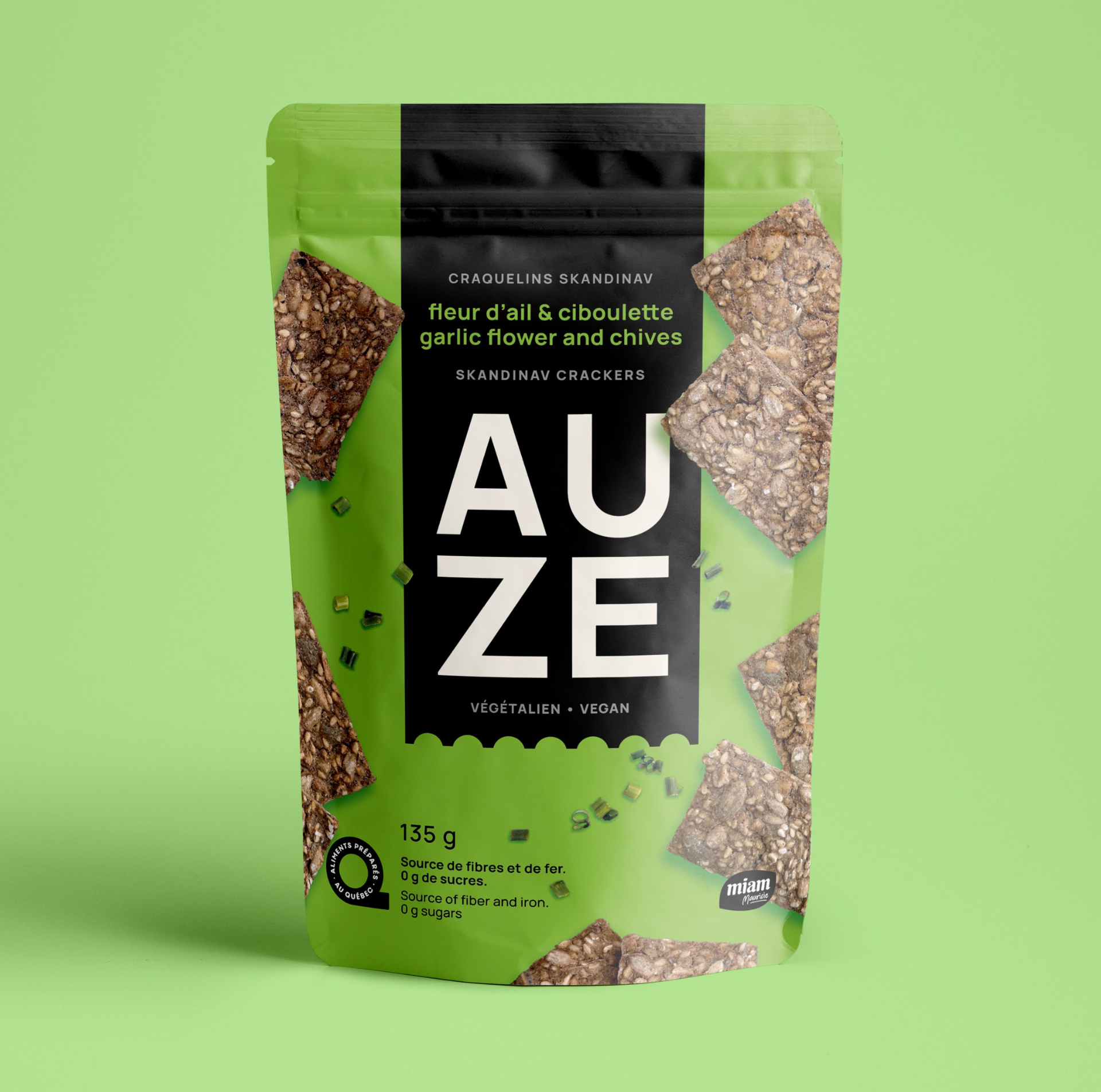 Craquez pour les craquelins fleur d’ail et ciboulette AUZE, une combinaison savoureuse et locale grâce à la fleur d'ail et à la ciboulette qui proviennent du Québec. Inspirés du traditionnel Knekkebrød norvégien, ils apportent une touche parfumée et raffinée à vos repas et collations.